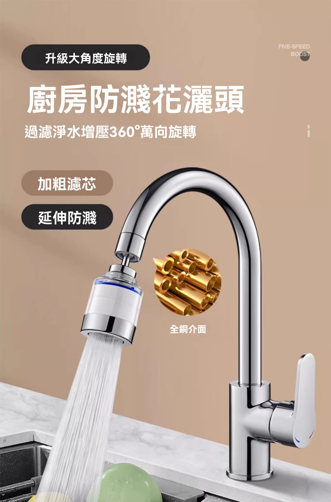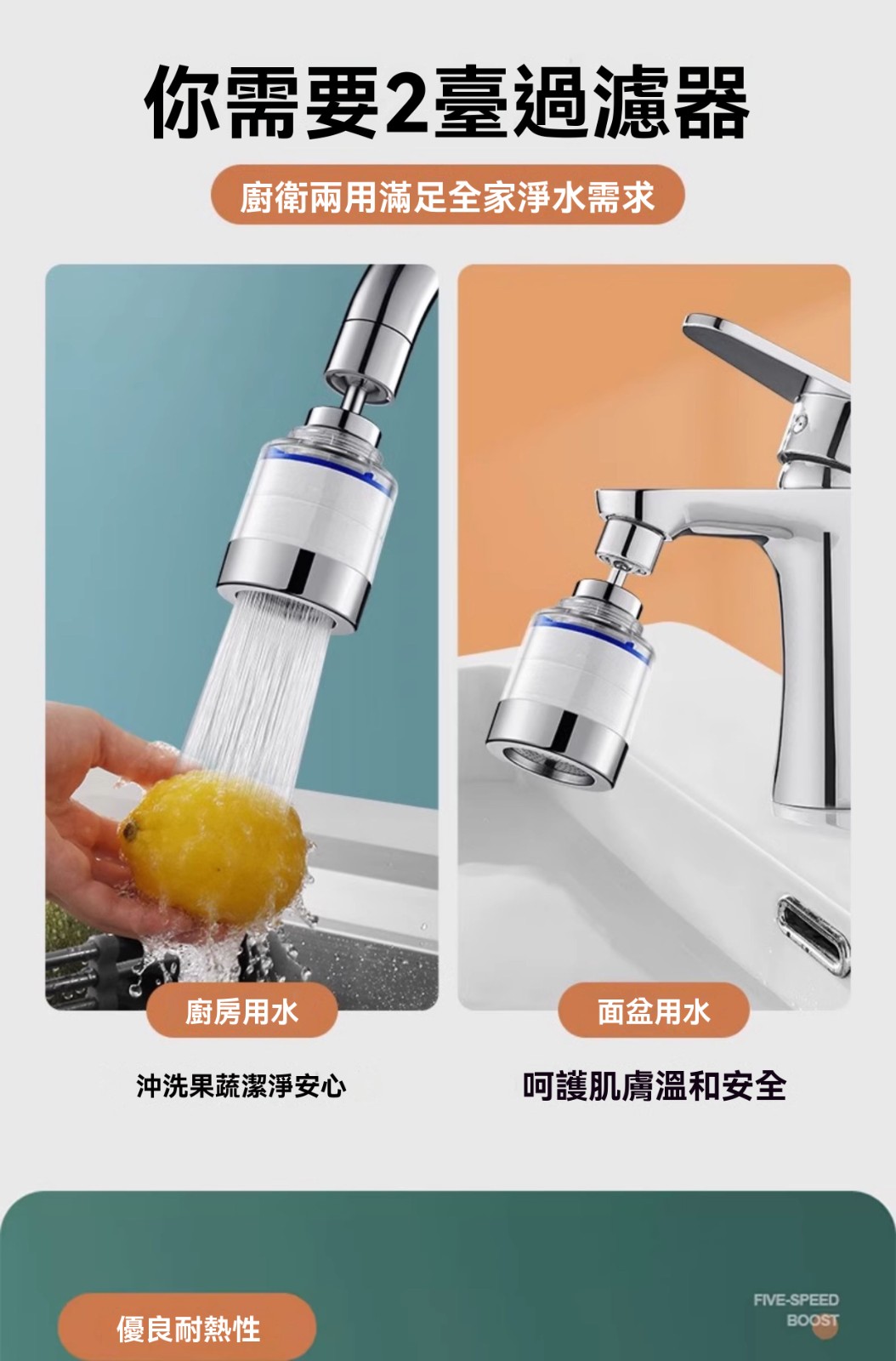 【水龍頭變身淨水站】一轉雙出水・360°防濺延伸・廚房用水智慧升級!