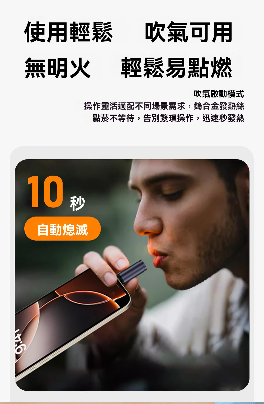 【颱風也吹不熄】USB點煙神器・吹氣振動防風・插入手機秒變隨身火種
